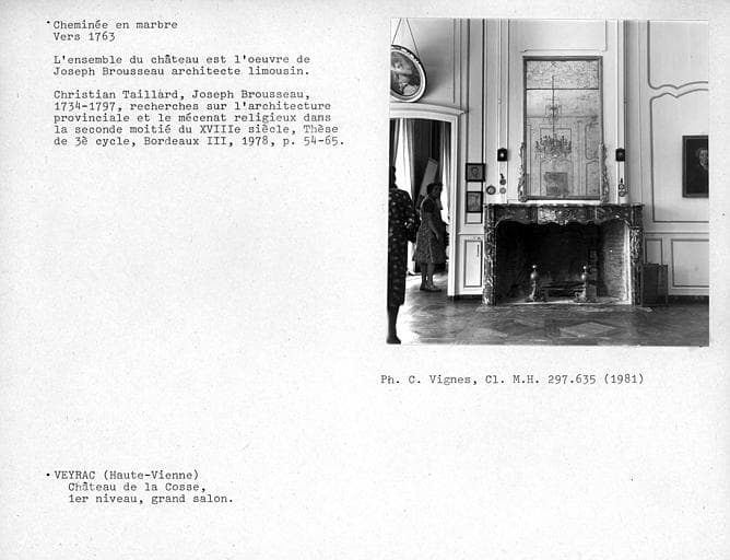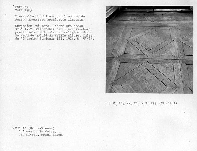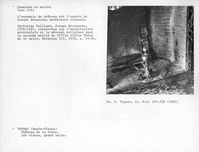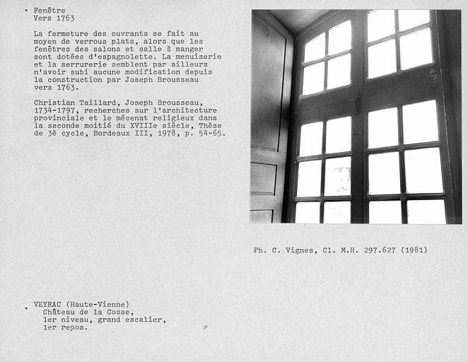 © Monuments historiques, 1992. Cette notice reprend intégralement les termes de l’arrêté de protection au titre des Monuments historiques. Elle répond à l’obligation réglementaire du ministère de la Culture d’établir la liste générale des immeubles protégés (art. R. 621-80 du Code du patrimoine). Elle est donc opposable et fait foi juridiquement. Aucune copie numérique ou papier ne sera fournie par courrier ni courriel. Le dossier de protection complet et l’arrêté sont consultables uniquement sur place, dans la salle de lecture de la Médiathèque du patrimoine et de la photographie (MPP), à Charenton-le-Pont (Val-de-Marne).