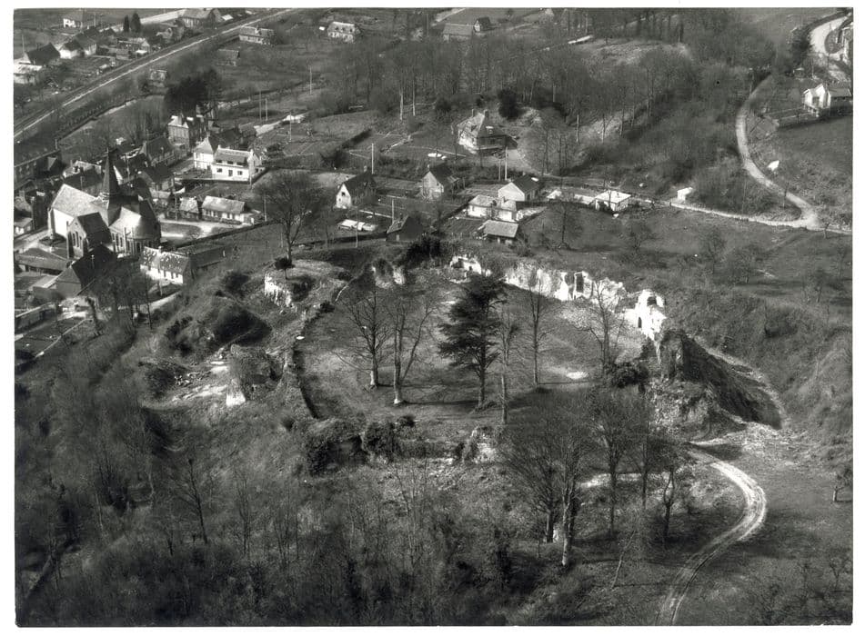 Exemple d'architecture militaire normande du 11e siècle, remaniée postérieurement. Forteresse en ruines avec enceinte elliptique, motte, anciens fossés et portions d'enceinte et de tours encore en élévation.