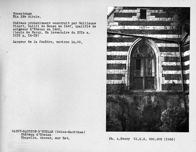 (c) Monuments historiques. Cette notice reprend intégralement les termes de l’arrêté de protection au titre des Monuments historiques. Elle répond à l’obligation réglementaire du ministère de la Culture d’établir la liste générale des immeubles protégés (art. R. 621-80 du Code du patrimoine). Elle est donc opposable et fait foi juridiquement. Aucune copie numérique ou papier ne sera fournie par courrier ni courriel. Le dossier de protection complet et l’arrêté sont consultables uniquement sur place, dans la salle de lecture de la Médiathèque du patrimoine et de la photographie (MPP), à Charenton-le-Pont (Val-de-Marne).