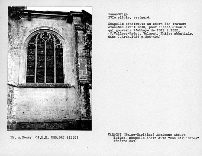 (c) Monuments historiques. Cette notice reprend intégralement les termes de l’arrêté de protection au titre des Monuments historiques. Elle répond à l’obligation réglementaire du ministère de la Culture d’établir la liste générale des immeubles protégés (art. R. 621-80 du Code du patrimoine). Elle est donc opposable et fait foi juridiquement. Aucune copie numérique ou papier ne sera fournie par courrier ni courriel. Le dossier de protection complet et l’arrêté sont consultables uniquement sur place, dans la salle de lecture de la Médiathèque du patrimoine et de la photographie (MPP), à Charenton-le-Pont (Val-de-Marne).