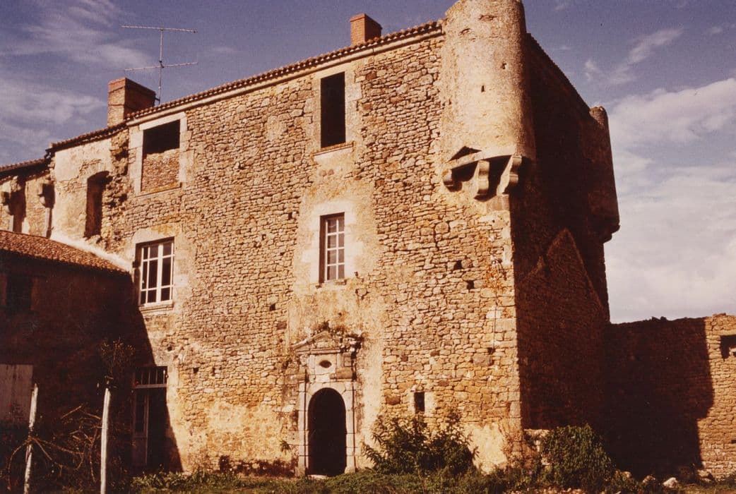 L'architecture du logis le rattache à un ensemble de logis de même importance et distants de quelques dizaines de kilomètres. Leur plan est semblable, avec les mêmes échauguettes aux angles, une porte d'entrée et un escalier très voisins. Au Moyen Age, la seigneurie relevait de Thouars. L'édifice a dû être agrandi au 17e siècle, et orné de peintures au trumeau des cheminées et dans le choeur de la chapelle. Le logis est placé à l'angle d'une cour fermée par des communs. Des tours se dressaient autrefois aux angles de cette sorte d'enceinte. Seule la tour-pigeonnier, au nord-ouest, existe encore. L'accès à la cour se fait par un double portail comprenant une partie cochère et une partie piétonne. De part et d'autre de la cour, les communs ont gardé à peu près leur aspect 17e, avec des portes en plein cintre et à agraphe marquée. Seule une partie de l'aile sud, touchant au logis, a été reconstruite sans doute au 19e siècle. Logis et communs sont construits en petits moellons équarris. Seuls la porte et les encadrements de fenêtres sont en pierre de taille. La hauteur du toit a été diminuée lors d'un remaniement de la charpente. Des échauguettes aux angles attestent encore d'un esprit très féodal. L'intérieur conserve un type d'escalier à une volée droite rampe sur rampe, très fréquent à la fin du 16e et au début du 17e siècle. Dans la pièce du rez-de-chaussée, le trumeau de la cheminée conserve des peintures. De même, à l'étage du dessus, les parties du plafond portaient également un décor peint de feuillages et de fleurs. La chapelle conserve un décor peint. La nef, voûtée en berceau, est constellée d'étoiles qui devaient être peintes sur fond bleu. Dans le retable de pierre, une grande peinture effectuée "a secco" sur la pierre, devait représenter une Vierge. De part et d'autre de ce retable, sont peints des bouquets de fleurs sortant de vases aux anses enroulées, posés dans des niches en trompe-l'oeil.