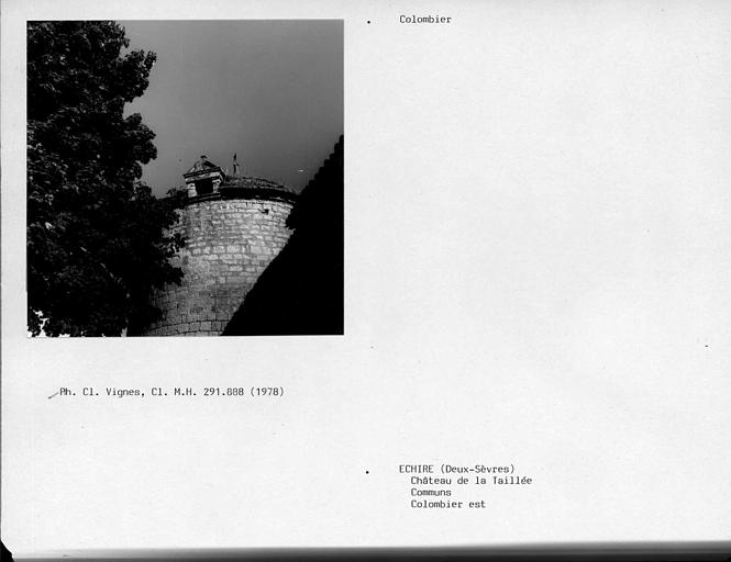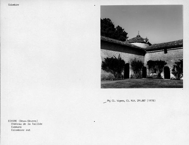 Entre 1636 et 1642, la famille protestante des Du Fay de la Taillée fait construire le château et les communs qui ferment la cour au nord. Ces communs sont ponctués par deux tours-pigeonniers implantées symétriquement de part et d'autre du bâtiment d'entrée, lui-même gardé par une bretèche à deux tourelles en surplomb couvertes d'un dôme de pierre. Les pigeonniers ont conservé leur toit de pierres plates sur voûte, orné de lucarnes à fronton triangulaire et surmonté d'un lanternon. Leur rez-de-chaussée est aménagé pour la défense. La composition originelle d'ensemble est complètement préservée.