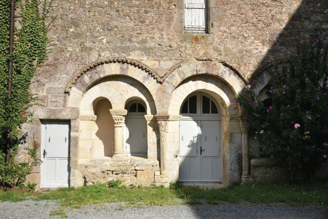 Des chartes signées en 1092 et 1119, permettent de dater l'édification de l'église et du prieuré. Ce dernier fut sans doute ruiné pendant les guerres de Religion, au moment de la prise de Parthenay et de son pillage par les Protestants, en 1562. Le prieuré ne fut pas reconstruit mais quelques dégâts furent restaurés. Il n'existait plus à la fin du 18e siècle. Les éléments conservés formaient le fond du cloître et l'entrée de la salle capitulaire. Il s'agit de trois arcs plein cintre dont les intrados sont doublés d'une corniche décorée. Les retombées s'appuient par une assise formant tailloir sur des chapiteaux sculptés. Chaque arc latéral est refendu par deux autres arcs en plein cintre dont les retombées centrales reposent sur des colonnes jumelées monolithes.