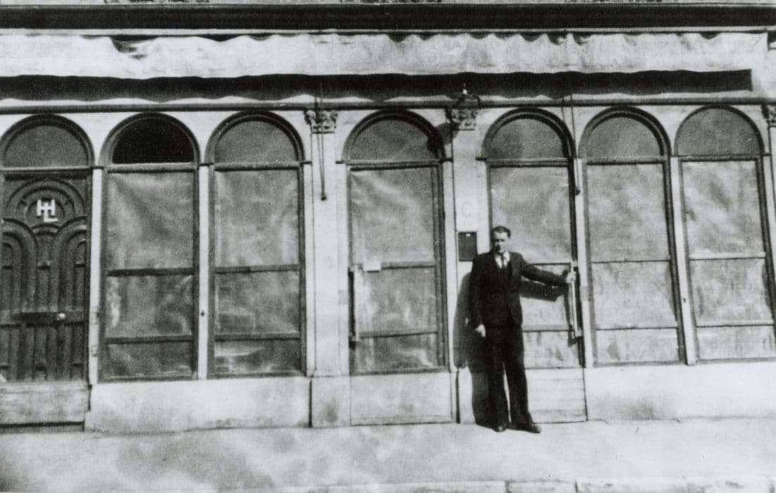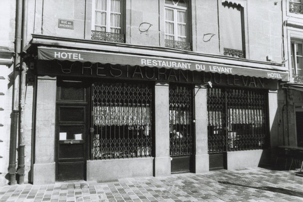 La devanture présentait une série de sept arcatures égales en plein cintre que les quatre pilastres corinthiens organisaient en une composition 1 - 3 - 1. Datable du troisième quart du 19e siècle, elle avait été modernisée probablement après la guerre de 1914 - 1918 : huisserie des baies, vantail art déco de la porte de l'hôtel à gauche.