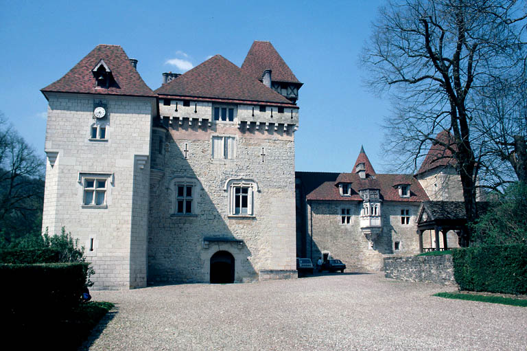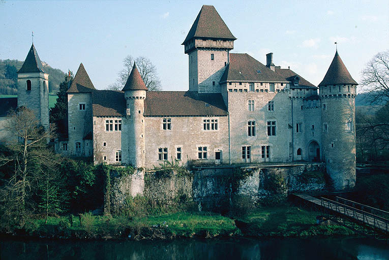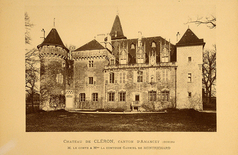 La route du sel en provenance de Salins traversait la Loue à Cléron. L'éperon rocheux qui domine le gué a dû posséder une maison forte dès le Moyen-Age. Reprise au début du 14e siècle, elle est mentionnée en 1384, époque à laquelle le gué est remplacé par un pont en bois. Le corps de logis perpendiculaire à la Loue, flanqué d'une tour carrée, doit correspondre à cette campagne. L'aile sur la Loue et la tour circulaire, dite "Tour de la Folle", remonteraient au 15e siècle. En 1691, le corps de logis est transformé. A partir de 1840, le retour au médiévisme entraîne une série d'adjonctions visant à donner à l'ensemble un aspect de forteresse médiévale et à créer des appartements dans le même style, grâce à l'apport de cheminées provenant de Crépy-en-Valois, Luxeuil et Arguel.