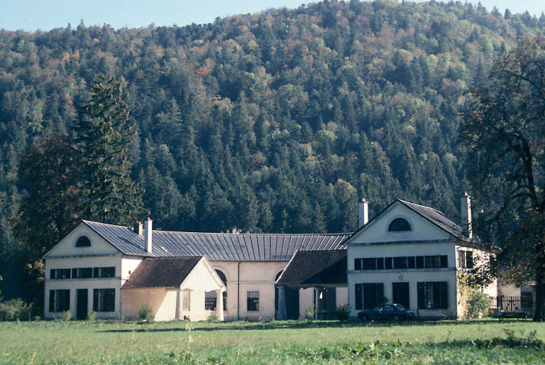 Ensemble unique en France avec ses deux sites industriels (usine du 18e siècle avec son martinet et usine actuelle, de 1813, modifiée aux 19e et 20e siècles avec un laminoir datant de années 1900-1905, toujours en activité) , ses deux types de logements patronaux et ses logements ouvriers. Site ayant toujours fonctionné et utilisant encore l'eau. Le martinet, de la première moitié du 18e siècle, a gardé son apparence malgré l'évolution de l'affectation. Avec cet équipement et le savoir-faire de ses ouvriers, les forges demeurent économiquement viables dans le domaine très compétitif de la mise en forme des aciers spéciaux. L'ensemble de production est complété par deux logis patronaux. Le premier, dit ancien château, de la première moitié du 18e siècle, a été transformé entre 1815 et 1821 par l'architecte bisontin Denis-Philibert Lapret. Le deuxième logement patronal ou villa palladienne (château Carnot) a été construit par l'architecte Champonnois l'Aîné entre 1827 et 1830 pour Emmanuel Jobez, député du Jura. E. Jobez et son beau-frère édifient la nouvelle usine en 1813 et agrandissent l'ancienne demeure patronale. Parc remodelé vers 1850.