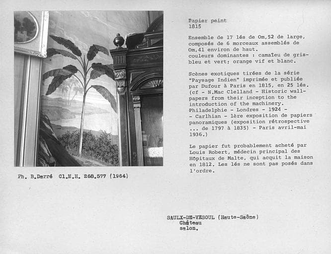 © Monuments historiques, 1992. Cette notice reprend intégralement les termes de l’arrêté de protection au titre des Monuments historiques. Elle répond à l’obligation réglementaire du ministère de la Culture d’établir la liste générale des immeubles protégés (art. R. 621-80 du Code du patrimoine). Elle est donc opposable et fait foi juridiquement. Aucune copie numérique ou papier ne sera fournie par courrier ni courriel. Le dossier de protection complet et l’arrêté sont consultables uniquement sur place, dans la salle de lecture de la Médiathèque du patrimoine et de la photographie (MPP), à Charenton-le-Pont (Val-de-Marne).