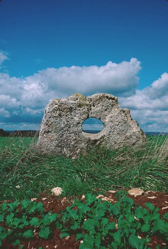 Dalle perforée de menhir dite la Pierre percée