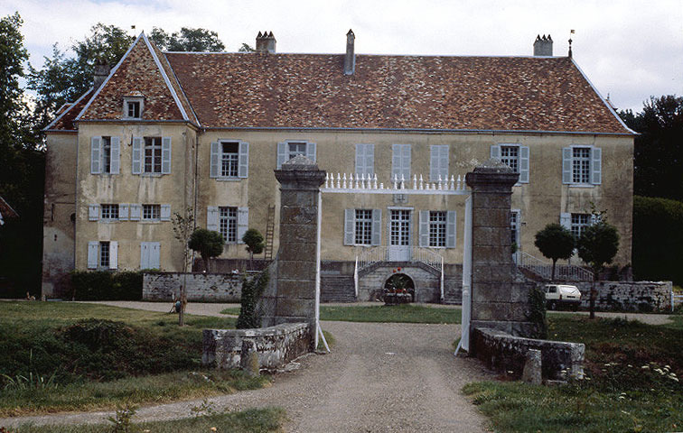 Maison-forte attestée dès le 13e siècle, qui était implantée sur une terrasse sans doute circulaire, ceinte de trois fossés concentriques en eau. Cet édifice fut certainement brûlé en 1636 par les Suédois de Saxe-Weimar. Le château actuel fut bâti sur ces ruines en 1713-1714, par l'architecte Claude-Antoine Aillet. Au cours du 18e siècle des dépendances agricoles furent ajoutées, ainsi que des ponts et des portails. L'ensemble actuel, entouré d'une des douves conservées, se compose d'un logis rectangulaire sur une terrasse, de quatre bâtiments principaux de dépendances agricoles et de diverses annexes. L'absence de décor en façade est représentative de nombreuses constructions civiles du début du 18e siècle dans la région.