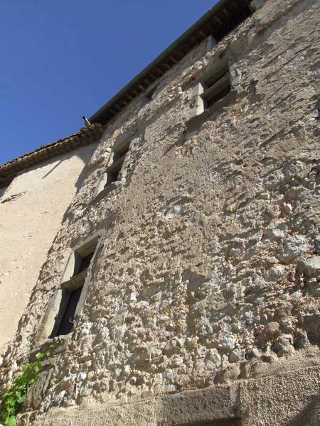 Le mur de la cour, très épais à la base, avec traces de chemin de ronde à hauteur du second étage actuel, paraît indiquer que cette demeure seigneuriale a été aménagée dans les murs du château-fort primitif. Ce castellum est mentionné pour la première fois en 1154, lorsqu'il est attribué à l'abbaye de Quarante. L'édifice a dû souffrir des guerres de Religion et la reconstruction presque complète des bâtiments a dû être réalisée au moment du retour à la paix, à la fin du 16e ou au début du 17e siècle. Les religieux de Quarante conservèrent le domaine jusqu'à la Révolution. L'édifice se reconnaît de loin par sa tour carrée qui intercepte une ruelle perpendiculaire aux anciens murs d'enceinte des défenses sud. Des deux culs de sac obtenus, celui du sud sert actuellement d'entrée. Celui du nord permettait autrefois d'accéder à la tourelle par une porte basse, murée depuis. Le mur méridional du château, qui longe la cour et se prolonge vers l'est au-delà de la tourelle, montre encore des traces de chemin de ronde au deuxième étage. Il s'agit là d'une courtine du château-fort. L'aile située à l'est de la ruelle remonte au 15e siècle. Cette partie, aujourd'hui propriété indépendante, était un vestige de la construction antérieure aux guerres de la Ligue. Au premier étage existent deux salles en enfilade. Une cheminée était adossée au mur occidental, entre les deux pièces. Cette cheminée était en grès, enduite de blanc. Les jambages se profilaient en lourdes consoles à quart-de-rond, les faces latérales ornées de volutes tracées en creux, la face antérieure chargée d'une palmette en relief, la pointe en bas. Le linteau était interrompu, comme la hotte, par un tableau central carré, nu. L'encadrement de ce tableau se décrochait, aux angles, suivant quatre crossettes. A l'aplomb supérieur des côtés verticaux du cadre, deux larges consoles à feuilles d'acanthe rejoignaient la partie supérieure de l'entablement. Ces deux consoles étaient reliées par une guirlande composée de linges et de fruits côtelés. Le linteau était décoré de chaque côté d'une tête d'ange avec collerette en coeur. La hotte verticale est surmontée d'un fronton circulaire rompu, raccordé avec les consoles qui surmontent le tableau central. Les deux parties de la face antérieure de la hotte ont reçu un décor symétrique, en relief (feuillage, masques léonins). Cette cheminée aurait disparu dans les années 1980.