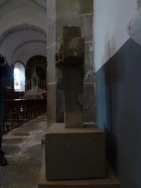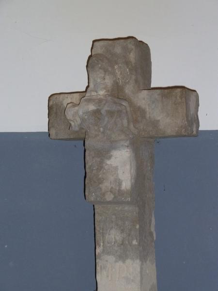 La croix se trouvait chemin d'Estresses à 400 mètres à l'ouest du village. En 1980, elle a été transférée à l'intérieur de l'église, au fond contre le mur nord ; la croix a été fixée sur un socle pivotant pour permettre de voir ses deux côtés. C'est une croix monolithe en grès dont les deux faces sont sculptées : une Piéta et un personnage agenouillé à ses pieds ; au revers un Christ en croix. Datée 1636.