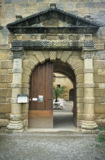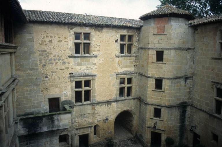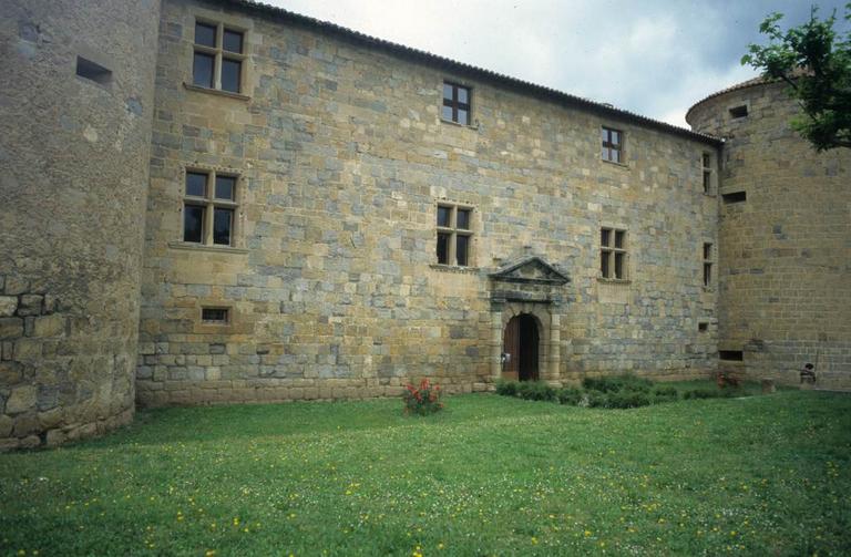 Ancien château des ducs de Joyeuse. Il ne reste que peu de vestiges d'une construction antérieure au 15e siècle, l'ensemble de l'édifice remontant à la Renaissance. Alors que la chapelle et l'entrée voisine indiquent l'époque de François Ier, le reste est de style Henri II. Les inondations de l'Aude ont rendu de bonne heure les caves du château inhabitables. La construction semble être restée inachevée pour tout ce qui concerne les couronnements sur cour et le décor intérieur. Les pièces sont couvertes de plafonds à la française. L'entrée principale, à l'est, est ornée de deux colonnes doriques, avec bossages vermiculés, couronnées d'un fronton. La défense basse, au rez-de-chaussée des tours, ne servait qu'au flanquement. En haut, au dernier étage de ces mêmes tours, sont placées les archères. Dans la cour d'honneur, la façade du portique d'entrée est ornée de trois ordres avec cartouches dans le bas sur rez-de-chaussée, gros modillons dans la frise au-dessus. Ce portique devait, au moins en projet, se terminer par une loggia couverte. Le balcon en encorbellement de l'angle nord-est n'est que le passage qui conduisait à cette galerie projetée ou aujourd'hui détruite. Les pièces de rez-de-chaussée sont voûtées d'arête, sauf les tours couvertes d'une coupole.