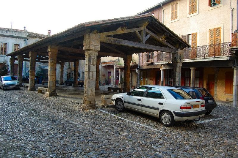 Les écussons armoriés sculptés sur plusieurs des piliers de pierre portant la charpente, permettent de dater cette halle du début du 14e siècle. La construction se compose de dix piliers portant cinq fermes. La partie abritée est dallée et meublée de six bancs en pierre. Les piliers en calcaire dur sont chanfreinés. Ces chanfreins sont arrêtés, en haut comme en bas, par un arrondi pouvant être comparé à un quart de sphère avec deux côtés coupés d'équerre.