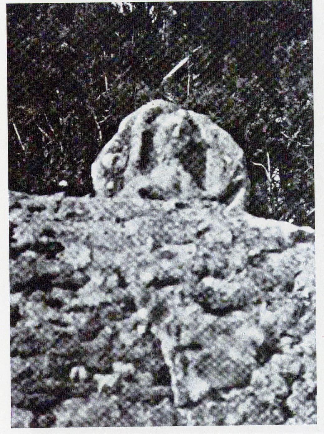 Ces croix, qui datent sans doute du 16e siècle, proviennent de tombes anciennes et ont été scellées dans le mur lors de sa réfection. Les deux croix sont de forme circulaire et présentent, sur une face, un buste féminin sculpté. Sur la croix de droite, la femme, dont on voit une partie de la poitrine, lève le bras droit, l'avant-bras replié et vertical. Le bras gauche, replié, est baissé. Le buste est de profil, visage de face, encadré de cheveux. Le tout est cerné par un bourrelet circulaire en relief. L'autre face est sculptée d'une croix pattée. La croix de gauche présente également un buste de femme, de profil, au visage de face. Le mouvement de la tête s'accompagne d'une légère inclinaison. Le modelé du visage, le respect des proportions et le sens du mouvement indiquent une technique plus sûre que pour l'autre croix.