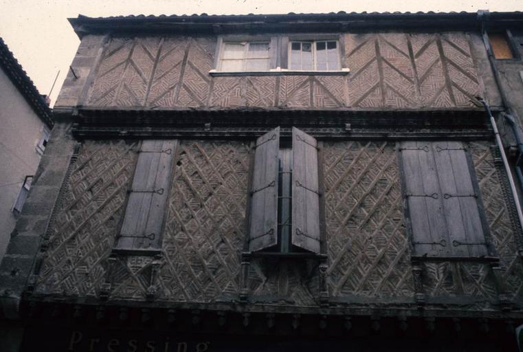 L'immeuble actuel se trouve mentionné en 1753. La façade sur la rue latérale est en pierre ; la façade principale en pan de bois. La chaîne d'angle, en pierre, marque l'encorbellement de la façade. Son puissant corbeau en quart-de-rond reçoit l'appui des sommiers, dissimulés par les boiseries des boutiques du rez-de-chaussée. Le pan de bois du premier étage se compose de huit poteaux courts : un à chaque angle et deux à chacune des trois fenêtres. Le colombage se compose d'un quadrillage oblique serré, entre les poteaux et, à l'allège des fenêtres, de simples croix de Saint-André. Au second étage, les poteaux sont plus rapprochés. Le colombage en chevrons, la pointe en haut, n'est peut-être pas sans rapport avec le blason des Alverny. Le remplage de briques est des plus variés. Les petits compartiments du colombage du premier étage sont garnis suivant des lignes, tantôt horizontales, tantôt obliques, parfois en épi. Les compartiments plus grands du second étage se prêtaient à plus de fantaisie : un compartiment triangulaire a été décomposé en un carré, garni de briques horizontales et en deux triangles avec briques verticales. Dans un autre, les briques sont disposées en point de Hongrie. Les bois n'ont été sculptés qu'au premier étage. L'intérieur conserve une rampe en fer, composée d'assemblages de fers plats enroulés en spirale.