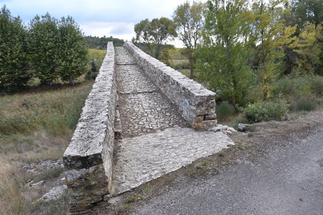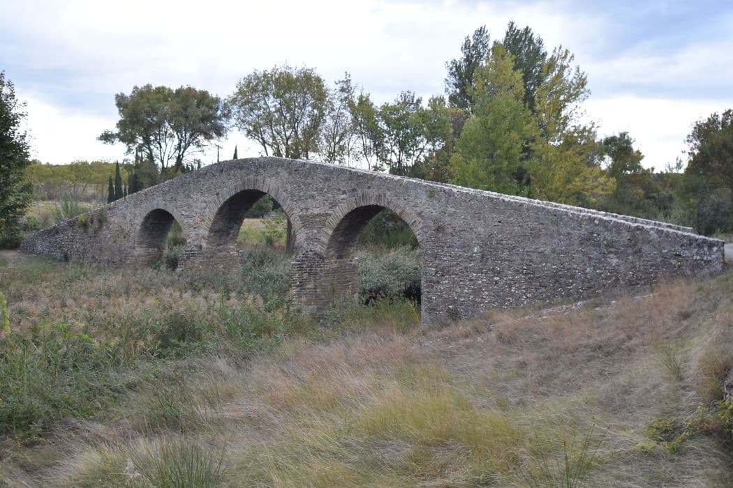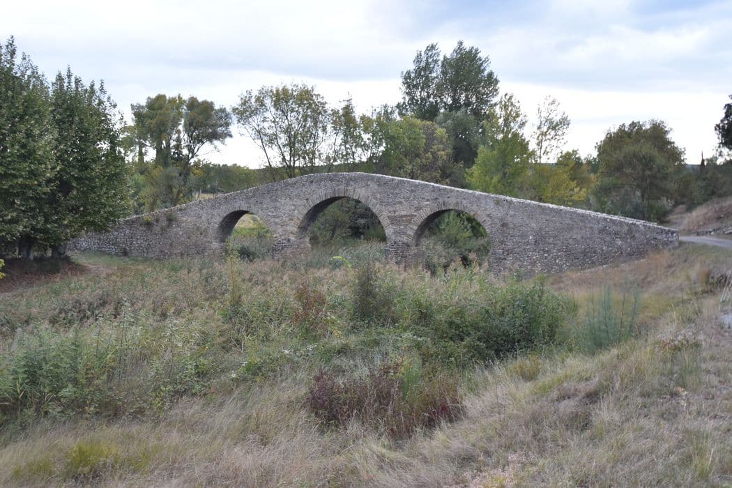 Le pont se trouve sur l'ancien chemin de Carcassonne à Lagrasse, qui existait déjà au 12e siècle, et pourrait par conséquent remonter à cette époque. La tradition l'attribue aux Romains. L'ouvrage est en dos d'âne et se compose de trois arches d'inégales dimensions. Les arches reposent sur des culées à bec saillant.