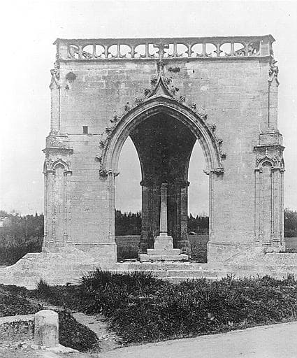 L'édicule se compose de trois faces élevées sur plan triangulaire, percées chacune d'une ouverture, enfermant un espace voûté au centre duquel s'élève une croix. Aux angles, des contreforts contrebuttent les voûtes. Une balustrade ajourée couronne l'édifice dont l'ensemble appartient à la fin du 14e sècle.
