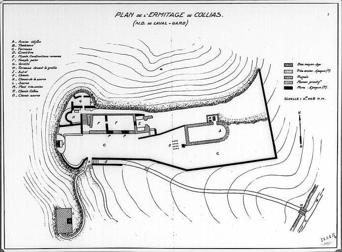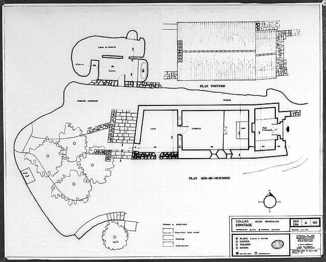 Ermitage tel qu'il est délimité par un mur d'enceinte
