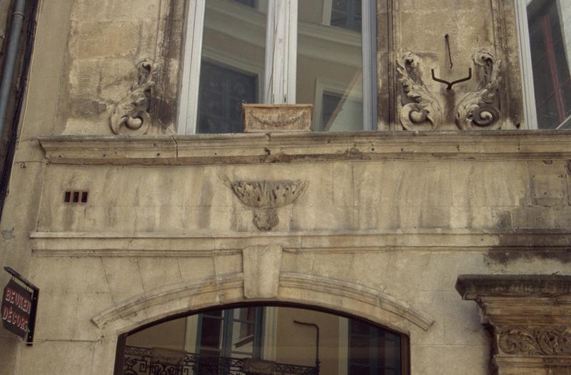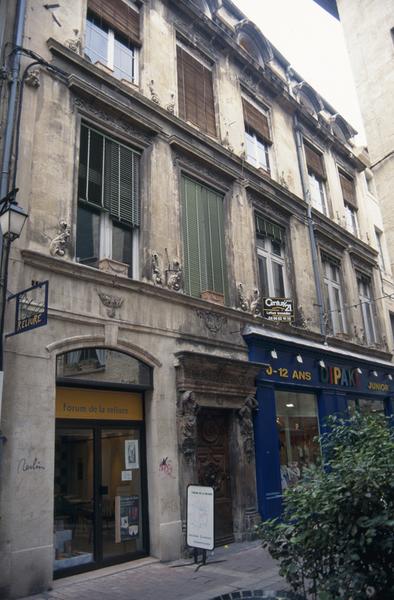 Cet immeuble est l'un des plus beaux exemples d'architecture civile nîmoise du temps de Louis XIV. Il a été reconstruit entre 1676 et 1678 à l'instigation du marchand de soie Jean Martin, par les architectes Pierre Cournon et Jacques Cubizol. A la fin du 18e siècle, ou peut-être au tout début du 19e siècle, deux travées sont ajoutées à l'est, à l'identique de ce qui a été édifié dans la seconde moitié du 17e siècle. La porte d'entrée est encadrée de deux atlantes, surmontée d'une architrave moulurée, d'une frise à rinceaux et d'une corniche à larmier ; elle possède un vantail unique à petits panneaux disposés autour d'un panneau central en forme de médaillon.