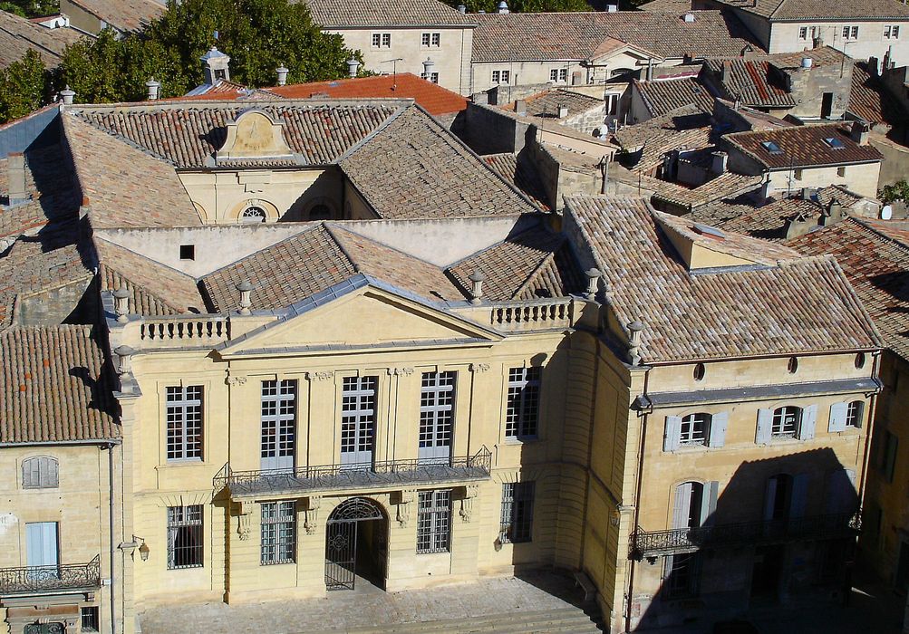 Façades et toitures sur les rues du Sénéchal et du Salin, sur la place du Duché et sur le boulevard Charles-Gide, ainsi que sur la cour intérieure ; galeries du rez-de-chaussée et du premier étage de la cour intérieure (cad. AY 463) : classement par arrêté du 21 mars 1983