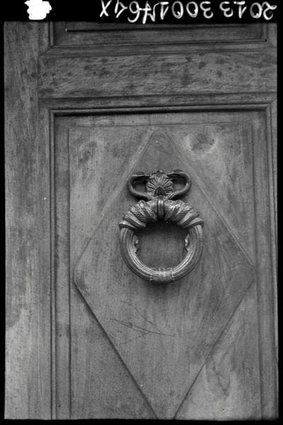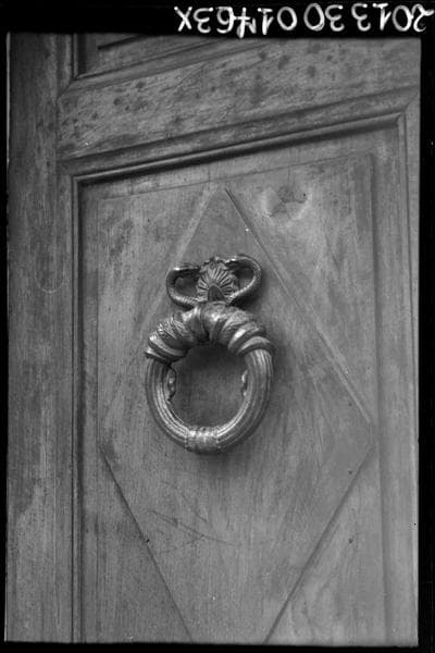 L'immeuble est moderne ou très remanié. Il est possible que le gros heurtoir de la porte d'entrée provienne d'un autre édifice. Cet anneau massif sert de support à deux serpents enroulés dont les têtes s'affrontent de part et d'autre d'une plaque-support en forme de coquille. La base de l'anneau, dans la partie frappante renforcée, est décorée d'une large feuille d'acanthe, étroitement enroulée. L'anneau est strié de façon à simuler un assemblage de faisceau de joncs.
