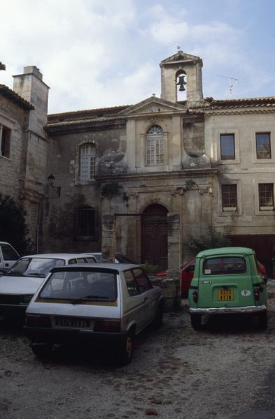 Au fond d'une cour, l'entrée se compose d'une porte ornée de quatre pilastres à chapiteaux ioniques, supportant un entablement surmonté d'une fenêtre. Le tout est couronné par un fronton triangulaire. Un petit campanile termine cette façade. A l'intérieur, la nef présente cinq travées sur lesquelles s'ouvrent, au nord et au sud, deux chapelles surmontées de tribunes.