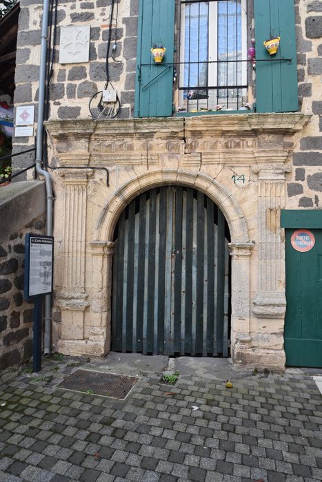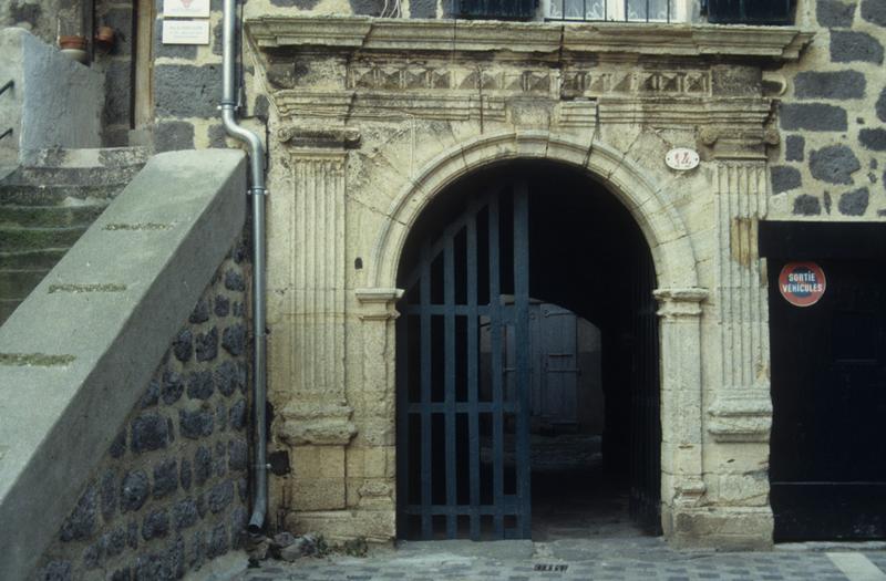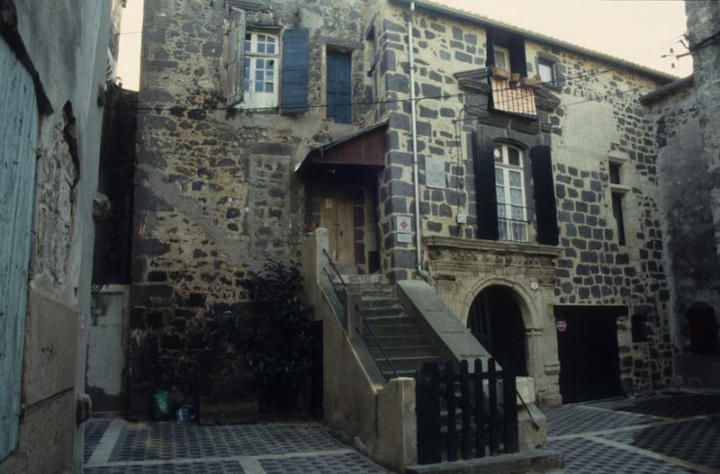 Résidence bâtie à la fin du 16e ou au début du 17e siècle, à l'emplacement d'un ancien immeuble dont certaines parties ont été conservées. L'ensemble, y compris les façades sur cour, est en lave basaltique d'Agde. La partie de mur roman conservée est en grès ou calcaire gréseux. Le portail à pointes de diamant est mentionné dans le compoix de 1592. Peu après sa reconstruction, l'hôtel fut morcelé, avant 1624. La campagne de construction de l'entrée et des galeries, doit être de très peu postérieure à 1592. L'entrée donne accès à un passage oblique qui rejoint la cour intérieure par un de ses angles. Le portail est en plein cintre. Des pilastres nus sont adossés aux piédroits et portent des impostes moulurées qui font retour, avec décrochement, sur les piédroits. L'ornementation de cette grande entrée comporte deux larges pilastres à cinq cannelures, avec bases surélevées, chapiteaux ioniques à volutes plates, échine décorée d'oves, de deux modules alternés. Ces oves sont soulignés par une ligne de losanges. Le balustre est cannelé. La frise est décorée, sur toute sa longueur, par des pointes de diamant séparées les unes des autres par un motif en forme en T.