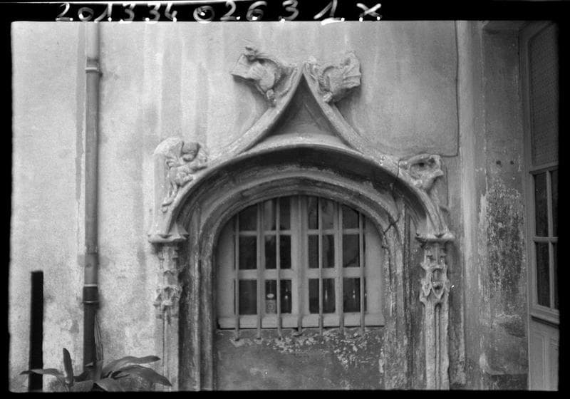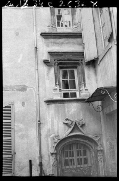 Une importante dénivellation sépare les rues des Docteurs-Bourguet et la rampe des Canterelles, entraînant au rez-de-chaussée de l'édifice la création d'une terrasse rue des Docteurs-Bourguet. L'immeuble ayant subi d'importantes modifications au 18e siècle, notamment dans les dispositions du portail d'entrée, il en est résulté des terrassements assez importants qui ont exhaussé le sol de la cour. La base de la tourelle d'escalier, en bordure de cette cour, s'est ainsi trouvée enterrée. Cette tourelle ainsi que les autres vestiges flambloyants encore visibles, sont situés au fond de la cour. L'ancienne porte sur cour de la tourelle est accostée de faisceaux de colonnettes formant pinacles, et surmontée d'un gâble à inflexions. Des animaux monstrueux de haute dimension en décorent les rampants (lion aîlé, chimère, basilic).