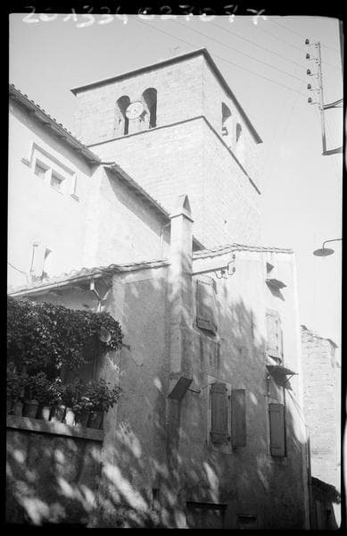 L'église est mentionnée dès 1135. A cette période correspondent certainement la travée de fond et le clocher contre lesquels la nef actuelle et le sanctuaire furent ajoutés au cours du 14e siècle, probablement pour remplacer une nef romane trop exigüe. Le choeur fut construit à l'emplacement de l'ancien cimetière. A l'extérieur, les contreforts ont servi, à la fin du 14e siècle, de support aux ouvrages défensifs (mâchicoulis). L'entrée est au nord, au fond de la nef gothique. Il s'agit d'une porte en arc brisé avec archivolte reposant sur deux culots historiés. Près du chevet, deux chapelles ont été aménagées entre les contreforts. Le clocher est éclairé, sur chacune de ses faces, par deux baies jumelles à arc plein cintre. La nef unique se termine par un chevet quadrangulaire. L'ancienne travée romane, à l'ouest, sous le clocher, fait office de narthex. Cette église correspond au type d'église méridionale du 14e siècle, conçue comme une forteresse pour répondre aux injonctions des sénéchaux de Beaucaire et de Carcassonne, après le traité de Brétigny en 1360.