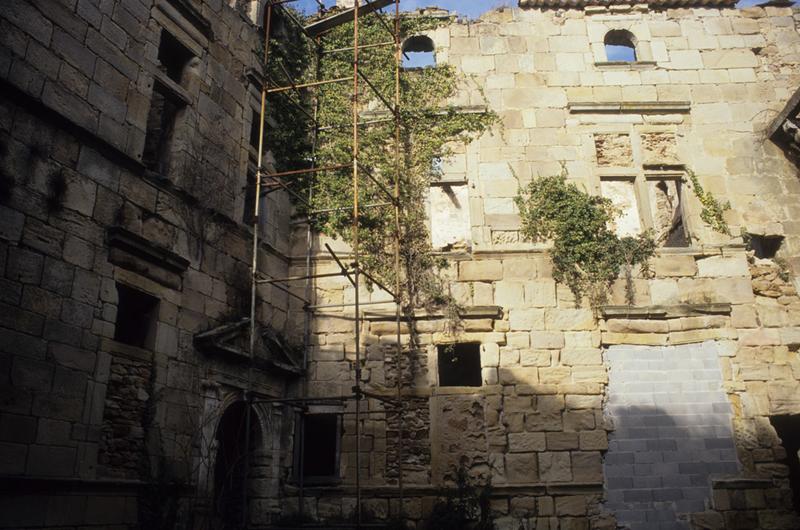 L'édifice est mentionné dès le 3e siècle dans l'histoire locale. Il comprend un vaste bâtiment carré dont la partie inférieure, d'après les baies géminées qui subsistent, remonterait au 12e siècle. La partie supérieure couronnée de créneaux et de mâchicoulis a été remaniée au 16e siècle, époque à laquelle les échauguettes qui flanquent les angles semblent avoir été établies. De cette époque subsiste également la porte d'entrée décorée d'un ordre ionique surmonté d'un fronton brisé.