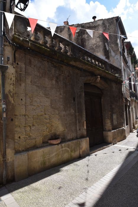 A la fin du 16e siècle, l'hôpital de Gignac occupait un autre emplacement, entre la Grand'Rue et la muraille de la ville. Leur chapelle, dédiée à saint Joseph, fut ensuite cédée aux Pénitents. Ce transfert étant mentionné dans une chronique de 1675, on peut en déduire que le transfert de l'hôpital est antérieur à cette date. L'hôpital actuel présente des bâtiments situés au fond d'une cour qui s'ouvre directement sur la rue. A gauche de la cour, en entrant, se trouve une terrasse, une galerie et un grand escalier. Au fond, la chapelle et les bâtiments de l'hôpital. Peut-être postérieur au reste de l'édifice, le portail s'ouvre sous un arc en segment de cercle, chargé d'une épaisse mouluration saillante. A la clef, une tête sculptée, en console. L'escalier à volées parallèles et les galeries adjacentes ont été groupés en un seul ensemble qui prend jour sur la cour par deux étages de trois grandes arcatures. L'entrée se fait par l'arc central. Les arcs de l'escalier sont en plein cintre, travaillés à refends, sans crossettes, et encadrés de pilastres nus, à impostes moulurées. La galerie du premier étage est supportée par un arc en plein cintre parallèle à la façade sur cour. Les paliers intermédiaires sont supportés par des arcs en plein cintre. Les terrasses qui prolongent la galerie autour de la cour sont garnies de balustres semblables à ceux de la première galerie, à panse galbée. La porte de la chapelle présente une clef saillante décorée d'une tête de femme, avec coquille. Au-dessus, petit fronton circulaire.