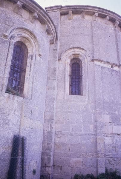 Suite à la ruine de l'église, sans doute à cause des guerres de Religion ou d'une crue du Lez, sa reconstruction est mentionnée en 1689, sur un plan réduit. L'absidiole nord, les murs de la nef et des transepts ont disparu. Le chevet et la façade appartiennent au style roman de transition du 13e siècle. Les deux culs de lampes conservés aux angles du choeur avec amorce de nervure, indiquent qu'il y a eu des voûtes renforcées de diagonaux. La porte et l'oculus datent du 17e sècle mais le mur de façade est roman, avec appareil alterné jusqu'au sommet du campanile. Le sommet présente sept corbelets qui proviennent peut-être des parties démolies. L'abside se distingue par les bandes qui la décorent, la mouluration qui encadre les baies et les corbelets sous la corniche. A l'absidiole, ces corbelets rappellent le roman bourguignon.