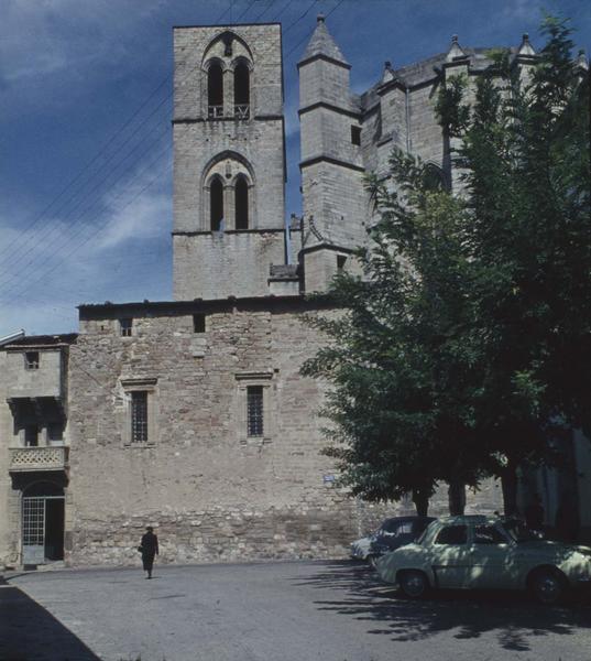 Cathédrale bâtie à l'emplacement de trois édifices antérieurs successifs. Clocher et nef unique du 13e siècle. Façade occidentale fortifiée au 14e siècle. L'édifice a été en partie détruit en 1573, au cours des guerres de Religion. Le tympan du 19e siècle remplace l'ancien, disparu au cours de ces guerres.
