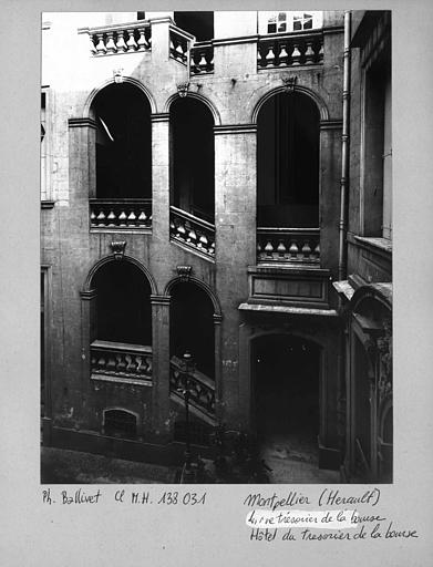 Cet hôtel existait avant le 18e siècle, mais l'édifice a été complètement remanié, agrandi et embelli par l'architecte Jean Giral, pour le compte du trésorier de la Bourse, Bonnier de la Mosson, qui acquit l'immeuble en 1712. Le corps de bâtiment situé entre les deux cours aurait été achevé en 1700 ; l'escalier d'honneur en 1731. Il ne resterait des constructions du 17e siècle que le petit escalier à droite de la cour d'honneur. L'entrée se fait par une porte à l'encadrement en pierre, avec refends, couronné par une corniche. La clef du chambranle est sculptée en perspective. Cette porte donne accès à la cour d'honneur en passant sous un porche voûté. Un dallage en cailloux roulés borde la cour et le porche et encadre, au centre, un chemin en dalles de pierre qui aboutit à un emmarchement au fond. Une porte à fronton cintré, avec motif sculpté, conduit par une galerie à la seconde cour de l'immeuble. A gauche dans la cour d'honneur se trouve le grand escalier. Les balustrades rampantes se composent d'éléments compris entre les piliers extérieurs et intérieurs qui supportent le limon au moyen d'arcs rampants. Des pilastres d'ordre corinthien sont adossés aux piles intérieures et leurs chapiteaux ne supportent rien.