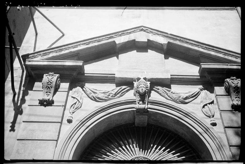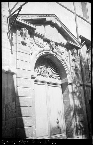 Le grand corps de bâtiment en façade sur la rue Rebuffy, s'élève de trois étages sur rez-de-chaussée, l'étage supérieur étant réduit à un demi-étage sous comble. Le portail à deux vantaux s'ouvre sous un arc en plein cintre. L'encadrement intérieur est mouluré de règles, d'un talon et d'un listel. La clef, en console, est sculptée d'une tête de femme. Les larges pilastres latéraux, à refends, portent d'étroites consoles décorées de palmettes et de fleurs de lis. Ces consoles supportent un grand fronton triangulaire au rampant mouluré en doucine. Les écoinçons sont garnis par des draperies terminées par des glands.