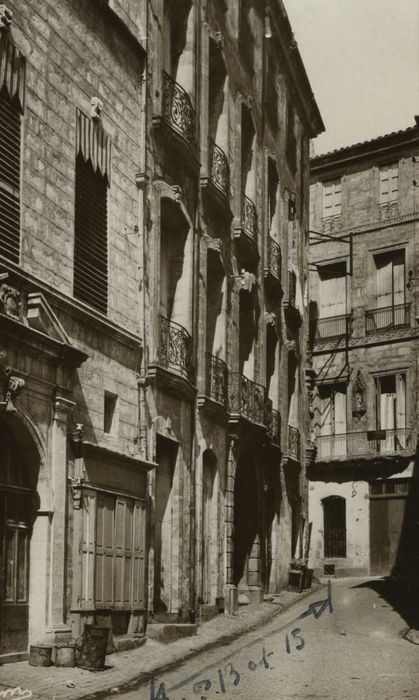 La façade a été aménagée au 18e siècle dans une construction plus ancienne dont subsistent des vestiges à l'angle de la rue Alfred Sabatier. Ces vestiges comportent notamment une niche datée de 1511. L'ordonnance du 18e siècle comprend des balcons galbés en fer forgé, ainsi que des clefs sculptées.