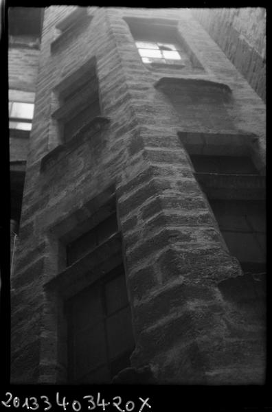 La rue de la Foire était l'une des artères commerçantes du vieux Pézénas. La maison présente des portes intérieures en accolade, des fenêtres à meneaux, à moulurations entrecroisées, des colonnettes à talons qui indiquent le 15e siècle finissant tandis que la porte d'entrée, en arc brisé, avec boudins à méplat, pourrait être un peu plus ancienne, ce que suggère également le décalage de cette entrée par rapport à la cour et à la porte de la tourelle.