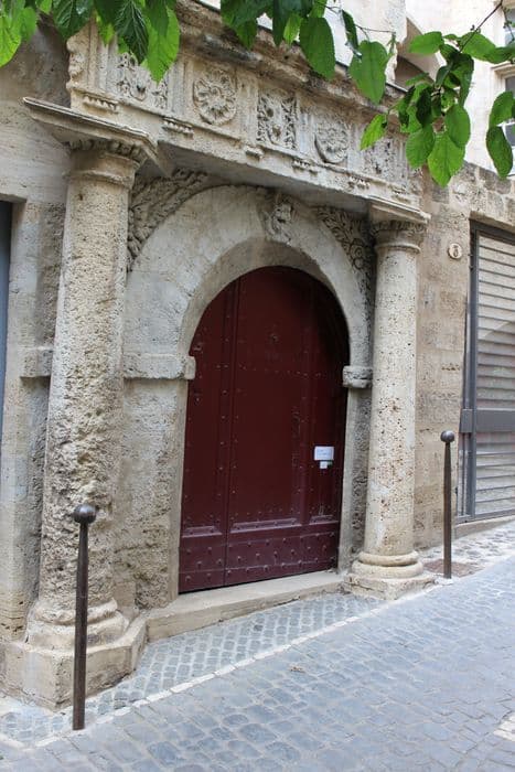 La porte dite de la Juiverie doit son nom à la proximité du ghetto de Pézenas qui datait de 1313. La porte présente un entrecolonnement d'inspiration classique avec colonnes, frise et corniche. La frise est constituée de métopes sculptées et de triglyphes. Les colonnes sont ovoïdales et la frise implantée suivant un parallélogramme, probablement pour donner un aspect perspectif plus important dans un espace restreint car l'ancienne entrée, dont l'arc est enore visible, ne semble pas avoir été biaise.