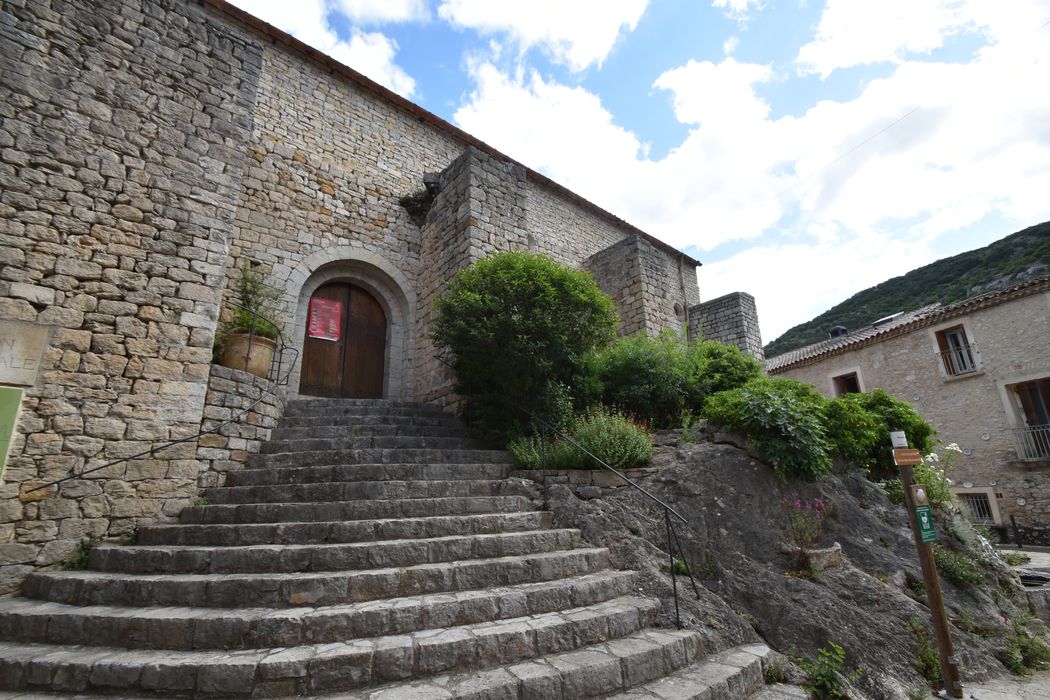 Autrefois l'une des deux églises paroissiales de Saint-Guilhem. L'abside ressemble à une tour d'enceinte fortifiée. Elle servait de citadelle et contribuait, avec les remparts dont elle était proche, à défendre la localité. La nef unique est soutenue par de très puissants contreforts. Les arcs doubleaux de la voûte, disparue, étaient supportés par des consoles et étaient encorbellés. L'abside est extérieurement ornée d'arcatures imitant des mâchicoulis. Seize marches conduisaient à l'intérieur de l'édifice.