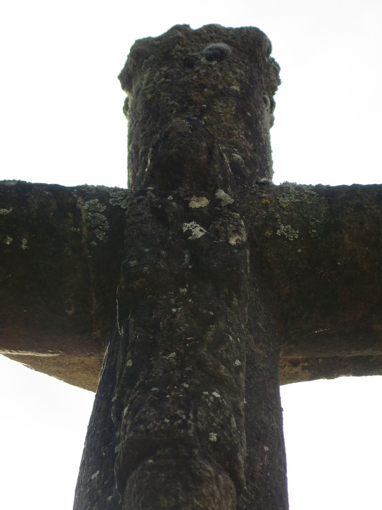 Croix en calcaire dont le fût est octogonal et porte, au bas, quatre conges gothiques pour rendre la base carrée. Lors de la restauration menée dans les années 1898-1899, le Christ a été refait. Seules ses jambes sont d'origine. Sur le revers, une Vierge est posée sur un cul de lampe en forme de pomme de pin, des stries formant les écailles. A l'extrémité supérieure du fût, un tore fait corps avec le croisillon dont la section est ronde. Les extrémités des bras se terminent en demie sphère. Des gouttes les encerclent en couronne.