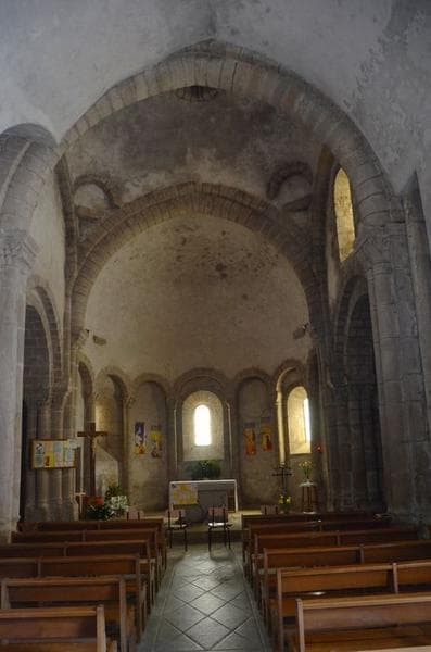 La première mention de l'église remonte à 1119, dans la confirmation des possessions de l'abbaye de Saint-Gilles du Gard. L'église orientée est complètement construite en granit. Son plan se compose d'une nef de trois travées, précédée d'un clocher porche et d'un choeur sur plan tréflé. La travée de choeur est terminée par une abside semi-circulaire et cantonnée, au sud, par une absidiole semi-circulaire et, au nord, par une absidiole semi-circulaire remplacée, au début du 15e siècle, par une chapelle sur plan carrée. Le portail présente plusieurs voussures en plein cintre. Le transept est couvert par une coupole. Le clocher-porche, à quatre arcades, semble avoir été rajouté postérieurement. Peut-être a-t-il remplacé un clocher barlong sur la coupole ?