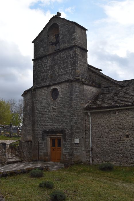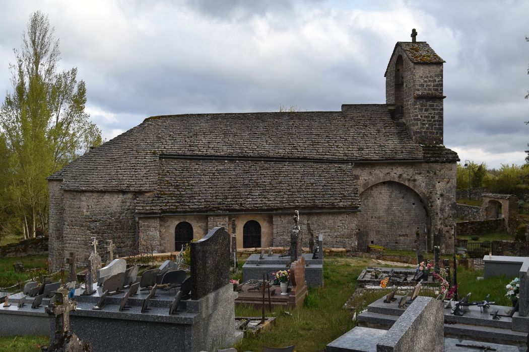 L'église dépendait du prieuré du Rozier et date en grande partie du 12e siècle (nef, sauf dernière travée ouest ; choeur avec absidioles latérales formant transept). La travée ouest de la nef fut ajoutée vers le 13e-14e siècle. La façade fut sans doute reprise à la fin du 15e siècle ou au début du 16e. Au 17e siècle, des collatéraux furent ajoutés, d'abord au nord puis au sud. Le clocher fut reconstruit à une époque récente, sans doute après destruction du précédent clocher en 1793. L'église est accolée au logis du prieur.