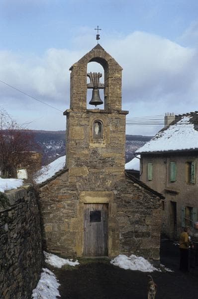 Les clochers dits "de tourmente" sont limités aux franges du Mont Lozère. Construits dans des hameaux dépourvus d'églises, ces ouvrages servaient à diverses occasions : angélus, glas, appel pour l'école communale, prévention contre les orages de grêle, signal sonore à l'attention des personnes égarées par le brouillard. Ils se limitent aujourd'hui au glas et aux incendies. Ces clochers s'apparentent au type du clocher-mur à baie unique à arc plein cintre et sont dressés sur une base rectangulaire amincie vers le haut. Certains sont munis d'une petite loge pour le sonneur, ménagée dans l'épaisseur de la base. Parfois dotés d'une petite niche où prend place la statue de la Vierge ou d'un saint, ils sont tous chargés d'une croix de fer ou en pierre. Ces ouvrages sont l'oeuvre du 19e siècle. Un ensemble patrimoniale lié à la vie sociale et économique peut y être associé.