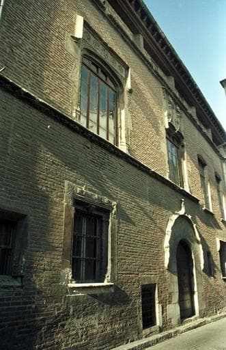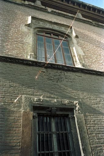 La façade sur rue s'ouvre par une porte charretière en plein cintre, à larges claveaux, flanquée de deux pilastres ioniques et coiffée d'un fronton classique à modillons. Dans le passage qu'elle commande se voit une porte à chambranle mouluré, couronné de chapiteaux et d'une accolade chantournée reposant sur des têtes d'angelots. La cour renferme un escalier découvert conduisant, au premier étage, à une galerie formée par trois arcatures reposant sur deux colonnettes à chapiteaux ornés de figurines. Au rez-de-chaussée, au départ de l'escalier, se voit une porte dont le chambranle mouluré est décoré de petites têtes formant chapiteaux et supportant une archivolte en accolade tourmentée. Au premier étage, dans la galerie, une porte décorée dans le même goût, donne accès aux appartements sur rue. Sur la même façade, une fenêtre est également couronnée d'une accolade ouvragée, portée par des figurines.
