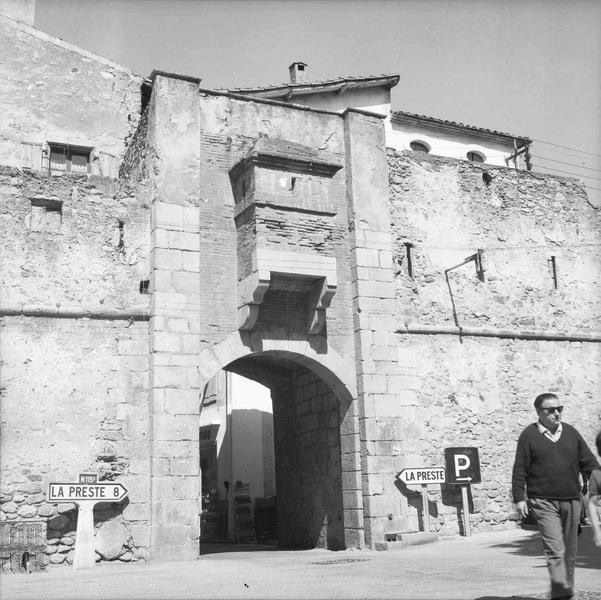 Dès le 14e siècle, une première enceinte aurait été construite autour de la ville, à l'emplacement de l'ouvrage actuel. Renversée par un tremblement de terre en 1428, elle fut ensuite relevée pour être à nouveau détruite au 17e siècle par l'insurrection des Angelets contre les armées de Louis XIV. Vauban fit alors construire le fort La Garde et entreprit le rétablissement des remparts tels qu'ils se trouvent aujourd'hui. Plusieurs portes donnent accès à la ville : la porte d'Espagne qui donnait accès au pont Sainte-Lucie ; la porte du Verger à l'ouest ; la porte de France à l'est ; la porte du Cimetière au nord, donnant accès au chemin souterrain conduisant au fort Lagarde. Toutes ces portes sont munies d'un pont-levis surmonté d'une échauguette à mâchicoulis. Les murs d'enceinte portent également des échauguettes qui flanquent les angles.