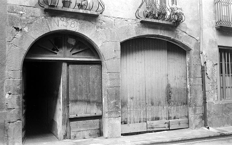 La seule partie ancienne visible est la façade du rez-de-chaussée, comportant deux grands arcs, l'un en plein cintre, l'autre en segment de cercle. Les encadrements intérieurs sont chanfreinés. La taille des pierres semble indiquer que les deux arcs sont contemporains. Les parements des arcs, ainsi que ceux de la façade, présentent de fines brettelures obliques. A une époque récente, le portail de gauche a été subdivisé en deux parties égales par un cloisonnement.