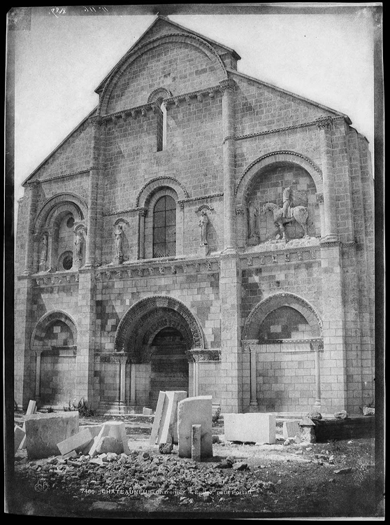 La façade, intacte, se compose au rez-de-chaussée de trois arcades, celle du centre servant d'entrée. Elle s'orne de colonnes et d'archivoltes enrichies de figures et de feuillages. Ces trois arcades sont surmontées d'un bandeau à consoles dont les intervalles sont remplis par des rosaces. Entre chacune de ces arcades s'élève, jusqu'à hauteur du premier bandeau, un pilastre saillant qui sert de base aux colonnes ornant la partie supérieure de la façade. Les deux colonnes du centre portent un grand arc qui décore le sommet du pignon. Au-dessus de la porte d'entrée se trouve une croisée à colonnes, accompagnée de deux statues nimbées. Dans les deux autres entre-colonnes se trouvent deux arcs dont l'un porte deux figures et renferme un second arc dont le fond est percé de deux oculi. L'arc du côté nord contient un cheval portant un cavalier. A l'intérieur, la nef est voûtée en berceau, de même que les bas-côtés. Un seul bras du transept appartient à la construction primitive. L'autre bras ainsi que le choeur remontent à la seconde moitié du 15e siècle. Le clocher est placé à l'extrémité nord du transept. C'est une tour carrée dont le dernier étage est percé, sur chaque face, d'une fenêtre à lancettes géminées.