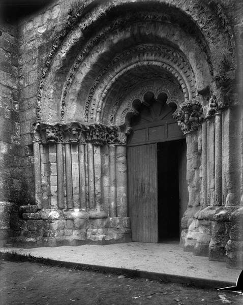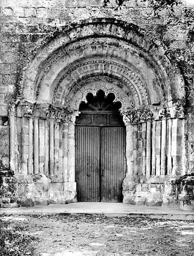 Edifice important, dépourvu de clocher, composé d'une nef, d'un transept et d'une abside carrée. La nef, flanquée de quatre énormes contreforts, est divisée en trois travées voûtées en voûtes d'arêtes du 15e siècle. L'abside est également flanquée de deux gros contreforts d'angle et voûtée également en voûte d'arête, ainsi que les transepts. Le portail date du 11e siècle. La plupart des colonnettes de ce portail ont disparu.