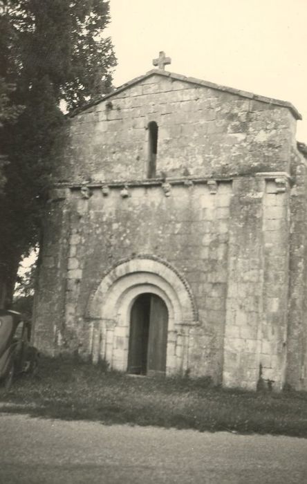 Eglise de l'ancien diocèse d'Angoulème, construite au 12e siècle. L'édifice a été mutilé et la voûte en pierre de la nef n'existe plus. Il est orienté, de plan rectangulaire à une seule nef et chevet plat. La nef est de trois travées, avec arcatures sur pilastres. Le carré du transept est plus étroit. Les chapiteaux des colonnes sont richement sculptés. Le choeur d'une travée est couvert d'une voûte à nervures du 15e siècle. Le pignon a été refait.