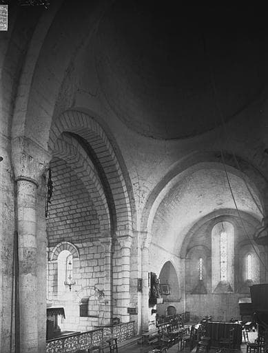 Eglise romane du 12e siècle qui présente une forme particulière de croix grecque. Les quatre bras sont égaux en longueur, mais la coupole n'est pas au centre. Les absides du transept forment un carré. Le clocher est placé au-dessus de la coupole.